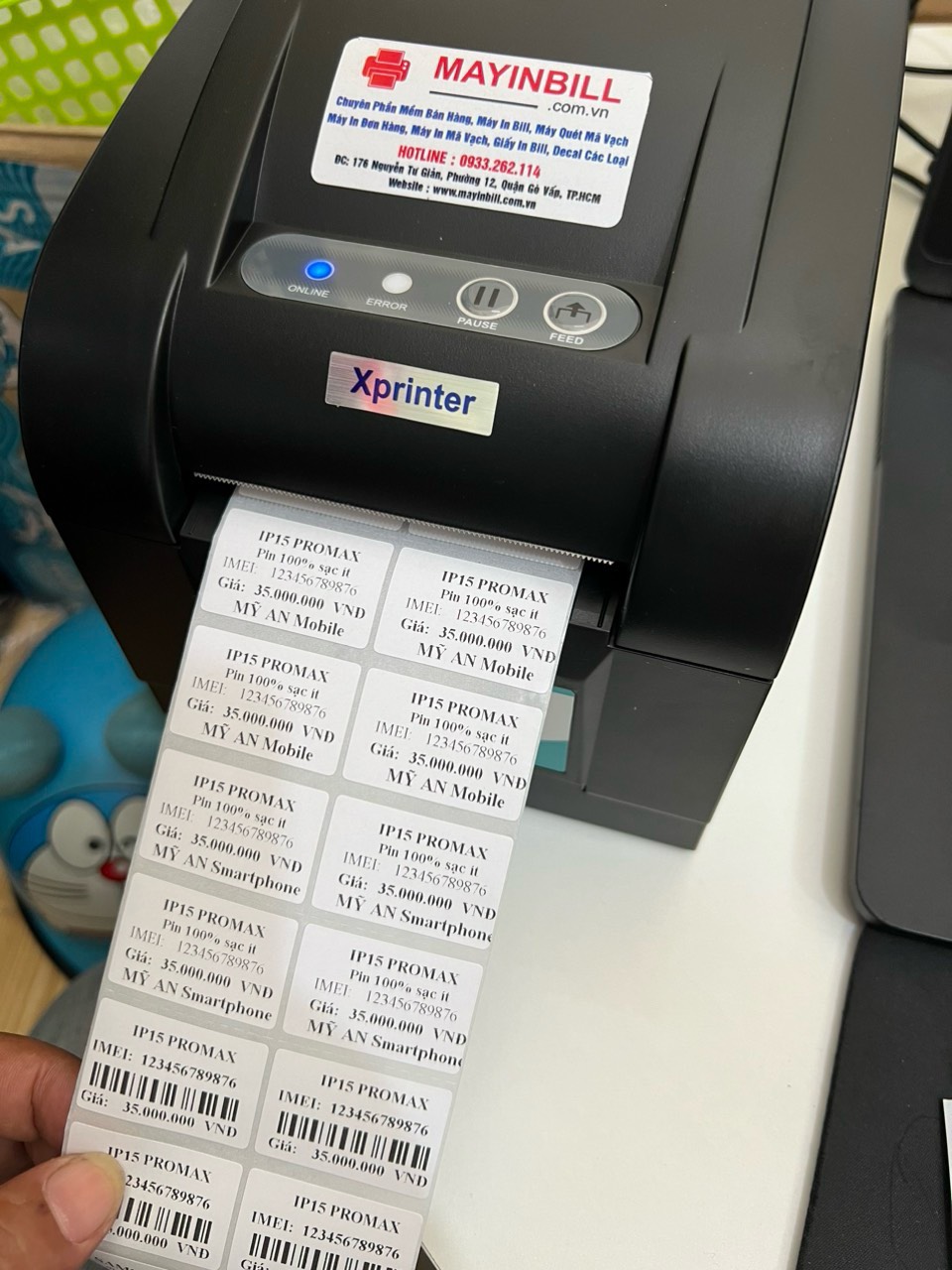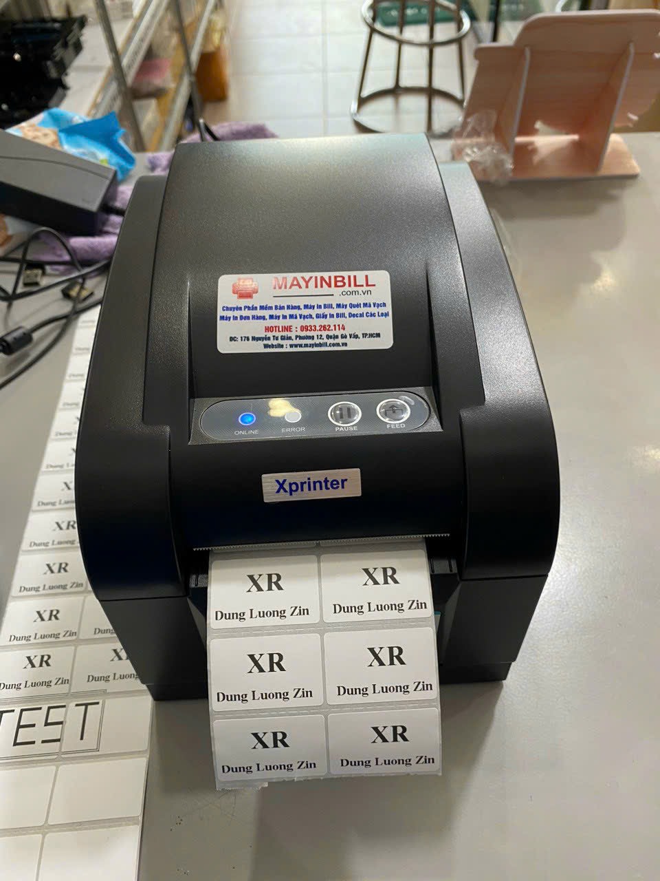 - Quy cách: Giấy nhiệt có sẵn mực, 2 con tem ngang